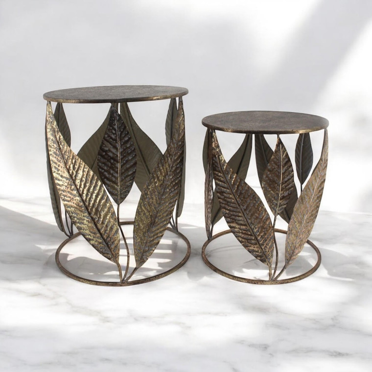 Add a touch of sophistication to your home decor with these beautifully crafted metal tables, 50X50X61CM43X43X50CM, Leaf Design